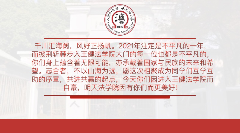 最后,吴江书记提出“法律是明德之学,入世之学、至善之学”,表达了对全体2021级新生的寄语和期许,祝愿同学们可以在禁漫天堂 这个大家庭里坚定法治理想、增强专业本领,互学互助、共进共赢,争做一名优秀的法学新青年。