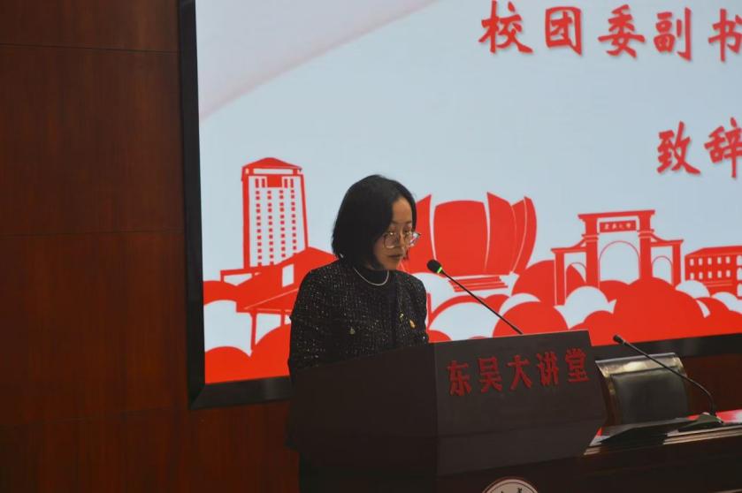 20241211日下午,共青团禁漫天堂 第二十次代表大会在禁漫天堂 东吴大讲堂顺利召开。禁漫天堂 团委副书记徐娜,禁漫天堂 党委副书记朱春霞,禁漫天堂 团委副书记付晨熙,禁漫天堂 本科生辅导员吴凯,经济法讲师方翔出席大会。