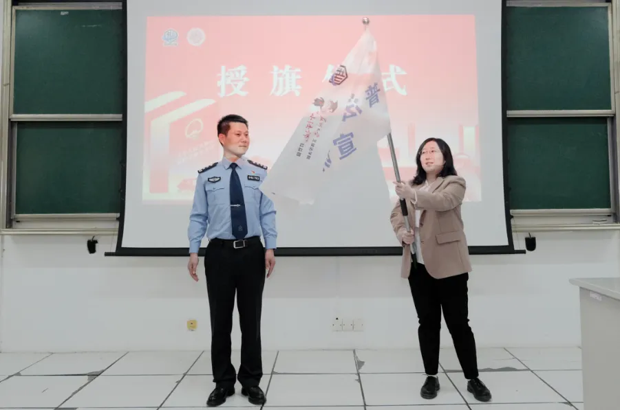 活动现场,周剑为禁漫天堂 “小法师”宣讲团授旗。苏州市道路交通安全协会副秘书长单建国为禁漫天堂 宣讲团学生代表颁发聘书。