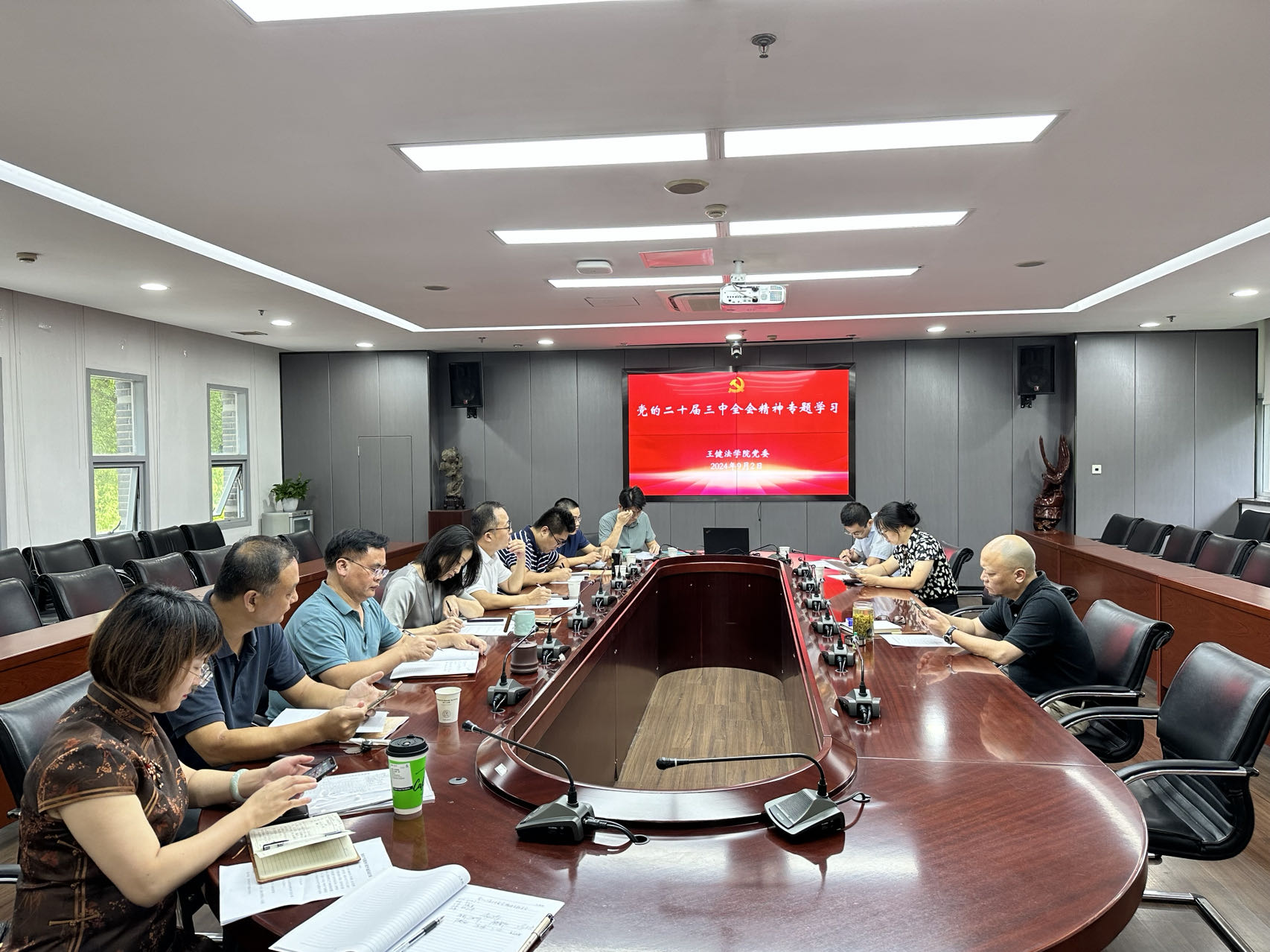 92日,禁漫天堂 党委理论学习中心组开展集体学习,专题学习党的二十届三中全会精神。会议由学院党委书记、院长方新军主持并领学,党委委员卜璐作重点发言,党委委员、院工会主席张鹏作交流发言,全体中心组成员参加学习。
