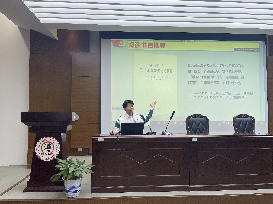 党的十八大以来,习近平总书记在不同场合多次谈到自己的读书经历,并站在治国理政的高度反复强调读书学习的重要性,强调中国共产党人依靠学习走到今天,也必然要依靠学习走向未来。在本次活动中,党支部书记丁钰乾带领大家学习《习近平关于调查研究论述摘编》一书,该书收录了习近平总书记140多篇重要文献,这些文献从认识论和方法论的高度,深刻阐明了开展好调查研究的重大理论和实践问题。调查研究,是做好各项工作的基本功,也是习近平多年来一以贯之的坚持:在河北正定任县委书记,他跑遍了所有的村;在福建宁德任地委书记,他提倡“四下基层”,深入群众之中;在浙江任省委书记,他调研了全省90个县市区。翻开《之江新语》,第一篇讲的就是如何开展调查研究。在这篇短文里,时任浙江省委书记习近平要求在调研工作中一定要保持求真务实的作风,努力在求深、求实、求细、求准、求效上下功夫。