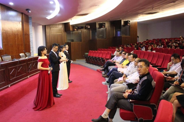 从开场的一部介绍短片中,现场来宾就已经感受到了十佳团队的风采,随着十佳团队的入场,同学们更是热情高涨。陆岸书记首先致辞,他对法学院同学积极参与社会实践并从中获得收获表示赞许,也预祝本次成果展示会圆满结束。