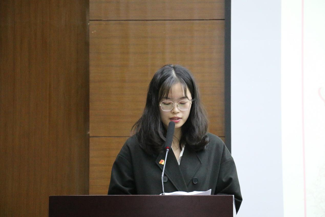 接着,本期优秀学员代表陈灵同学上台发言。回顾过去两个月的培训学习,通过积极组织参与助力考研同学的线下志愿活动,她决心在往后学习中补足短板,锤炼作为中国青年的志气、骨气和底气,不负党和人民的殷切希望,以青春蓬勃朝气的姿态在为他人服务中承担自身使命担当。