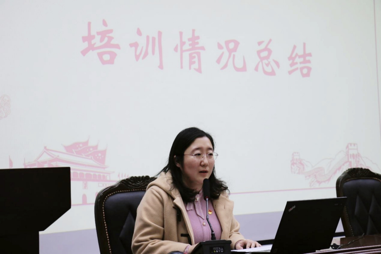 培训班汇报会完毕后,进行结业典礼。首先,全体参会人员奏唱《国际歌》。随后,由付晨熙老师对本学期培训情况进行总结。本期党校培训坚持理论学习、主题实践活动和读书会“三位一体”的培训模式,学员参训率达到100%,合格率100%,在党史教育中探索新的特色活动,如“励学助考”系列活动、“师生下午茶”系列活动等,对学员学习提出了更高的要求与期望。