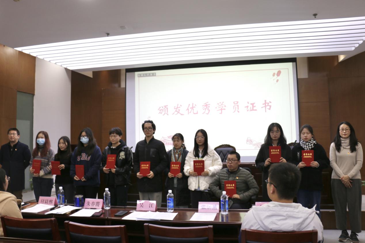 随后,朱春霞副书记宣读本期优秀学员名单,由吴江书记、朱春霞副书记共同为5位党的基本知识培训班的优秀学员和5位预备党员培训班的优秀成员颁发荣誉证书。