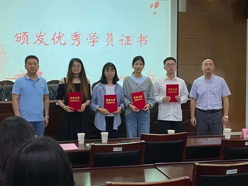 随后,副校长王振华老师宣读了本期分党校优秀学员名单。吴书记、王副校长共同为6位党的基本知识培训班的优秀学员和4位预备党员培训班的优秀学员颁发荣誉证书。