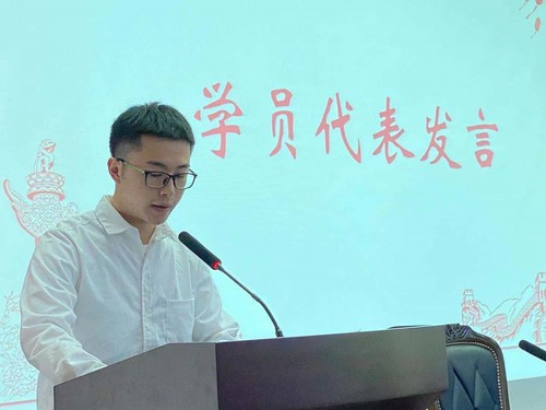 接着,吴明韬同学作为优秀学员代表发言。作为预备党员回顾了三个月的党校学习经历后,他感受到在建党百年之际学院组织筹办相关活动的严密性和积极性以及各学员们的热情,自己更应该努力学习党史、感悟党的精神,抓住机遇,努力成为一名优秀的共产党员,让青春在为祖国、为人民、为民族、为人类的奉献中焕发出更加绚丽的光彩。
