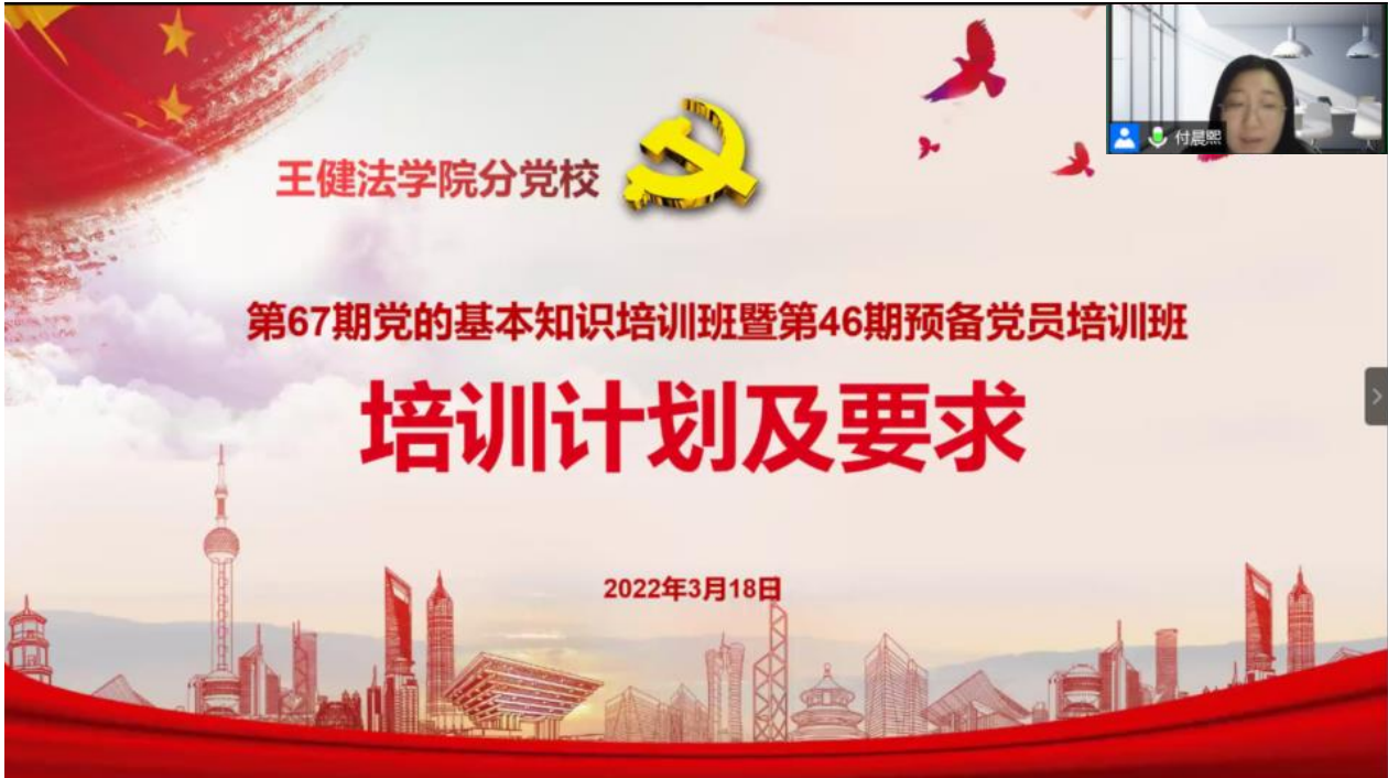 随后,付晨熙老师为大家介绍本次培训的学习内容、学习计划及结业要求。付老师强调,疫情当前,各位学员应当结合线上与线下、校内与校外、理论与实践等方式进行综合性的党史学习教育,并且发挥主观能动性积极参与志愿活动和主题活动,在学思践悟中实现“知行合一”,为学校建设贡献青年力量。