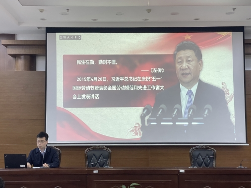 分党校于5月10日13时在西式模拟法庭学习贯彻习近平新时代中国特色社会主义思想主题教育。研究生辅导员田毓,2023年分党校第一期全体学员参与本次活动,分党校培训部胡钰婷同学担任活动主持人。本次活动由读书汇报、经典语录阅读与分享、劳动观思辨讨论会三个环节组成。