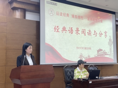 活动伊始,入党积极分子、发展对象、预备党员共十个小组分别进行了汇报分享。学员们从多个角度、多种形式、多重层面对党的历史、理论知识、英雄人物等进行了全面、深入、独到的分享。其中,部分学员在组织理论学习的同时注重知行合一,自发前往苏州革命博物馆体会革命先辈的无私无畏,接受革命精神的熏陶。有的学员学习后深有所感,以整齐划一、声情并茂的诗朗诵来表达对革命英烈的无限敬仰以及建设祖国的坚定意志。有的学员则以一本书、一个人、一部电影为切口,深入了解时代背景下中国共产党和共产党员筚路蓝缕、前赴后继、永不放弃的创业史,体悟深刻。