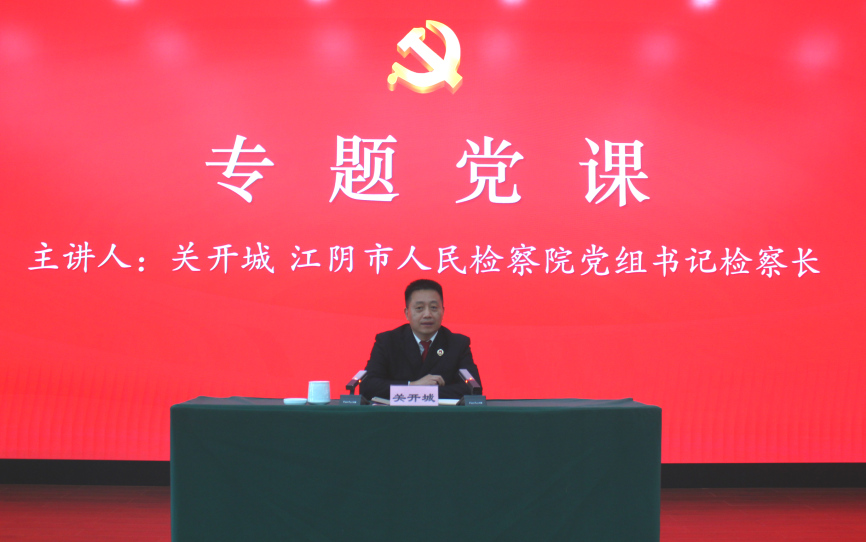 在《国际歌》庄严激昂的旋律后,关开城检察长以《党建引领:优秀检察人才的成长》为题讲授党课。