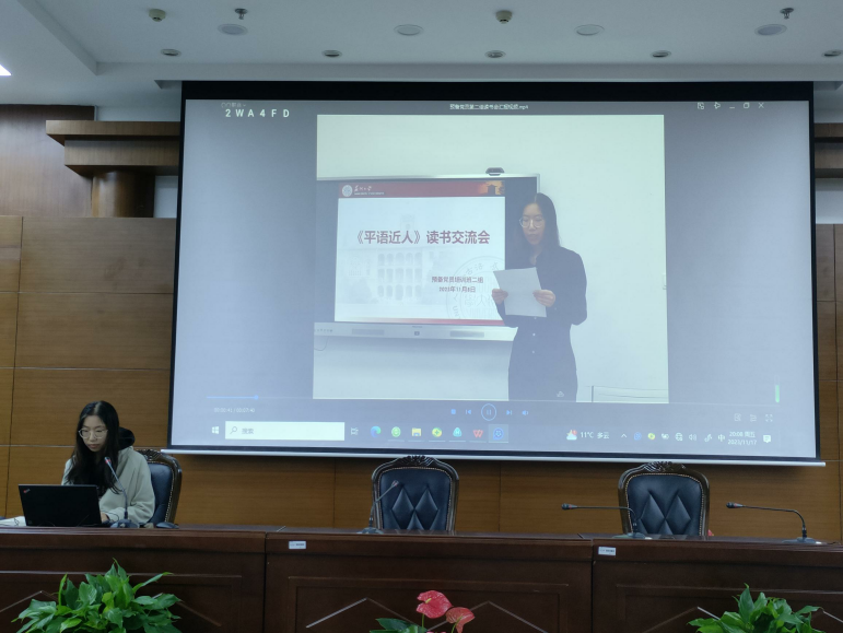 本次读书会分为预备党员与积极分子两个组别进行汇报交流。第一小组围绕《红星照耀中国》进行学习,他们将自己的感悟制作成视频进行分享汇报。他们认为,中国共产党是领导红军完成长征、率领广大人民群众进行伟大抗日战争的熊熊炬火。中国共产党自成立之日起,就把为中国人民谋幸福、为中华民族谋复兴作为初心使命,披荆斩棘、一路向前,带领中国人民取得了一个又一个伟大胜利。我们也应该坚持党的全面领导,牢记习近平总书记的殷殷嘱托,矢志不渝为中国特色社会主义共同理想而奋斗。