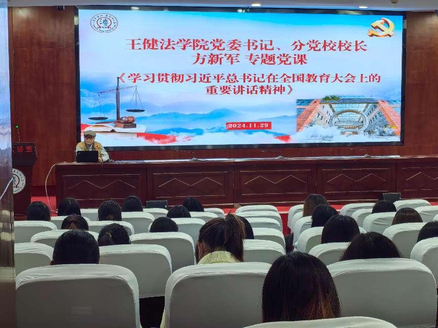 首先,方新军书记以“学习贯彻习近平总书记在全国教育大会上的重要讲话精神”为主题,为学员们带来了一堂发人深省的党课。在党课中,方书记从习近平总书记在全国教育大会上的讲话出发,深入浅出地阐释了自己对讲话的理解和感悟,并强调了教育作为国家强盛之基的重要性。他指出,要发展成为中国特色社会主义教育强国,必须具备强大的思想引领力、人才竞争力、科技支撑力、民生保障力、社会协同力以及国际影响力,这些力量将为中国式现代化及全面推进强国建设、实现民族复兴的伟大事业提供坚实支撑。
