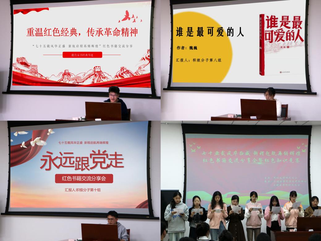 分党校顺利举办“七十五载风华正盛 新航启程再铸辉煌”红色书籍交流分享会暨红色知识竞赛活动。此次活动旨在通过与红色经典的深度对话,强化爱国主义思想教育,激励广大青年学子的民族自豪感与历史责任感,凝聚青春智慧与力量,引领青年一代勇立潮头,共同谱写新时代的壮丽篇章。