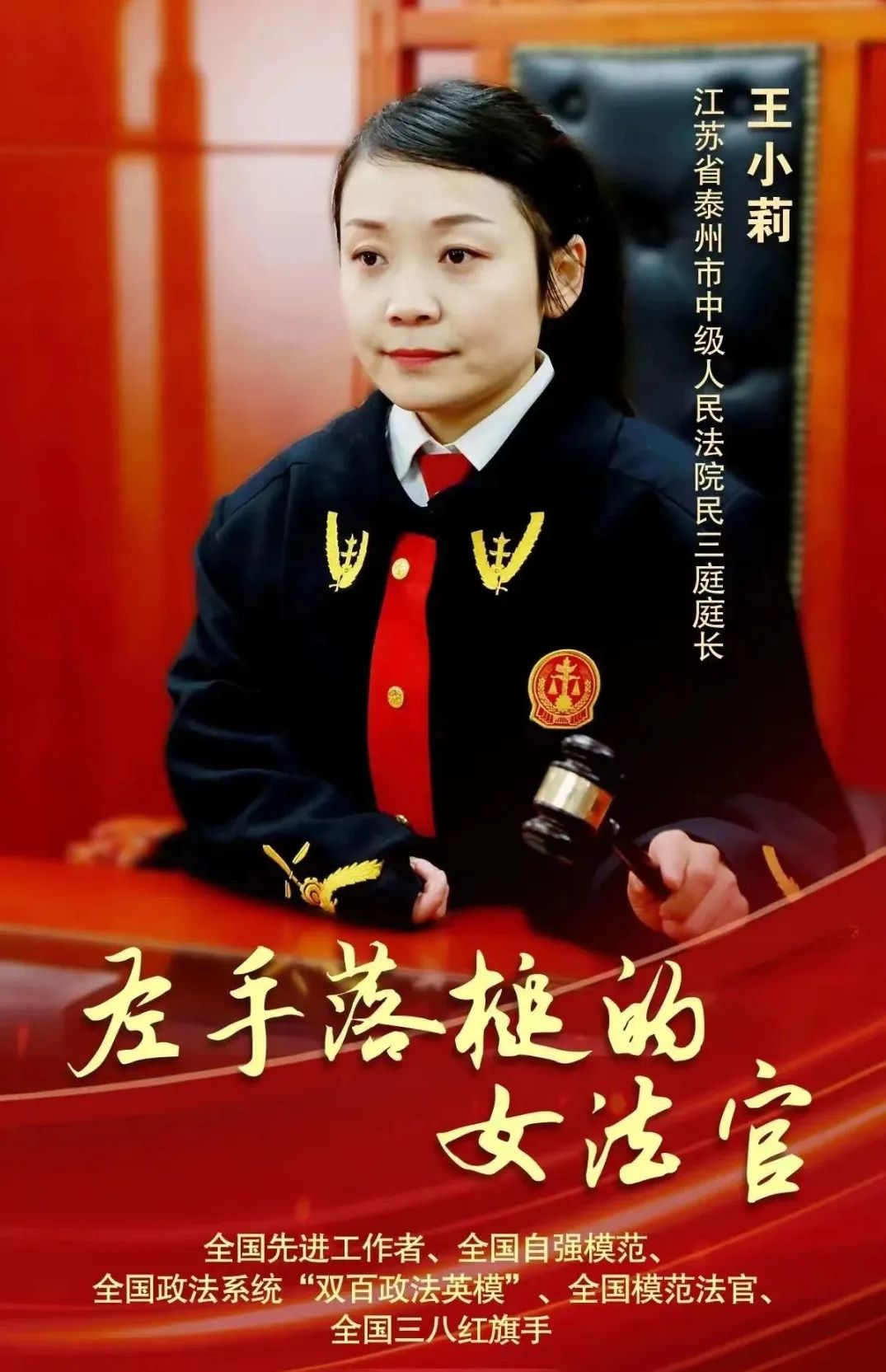 因为出生时的医疗事故,王小莉右手部分功能丧失,但她以梦为马、左手落槌,在10多年的民商事审判工作中,她审理案件2000余件,各项质效指标均名列前茅。在多年的审判生涯中,她努力做到为民、护民、便民、利民,最大限度地维护当事人的合法权益。到泰州中院民三庭从事知识产权案件审理后,王小莉将审判调研工作与服务大局相结合,带领调研团队编写《泰州医药产业知识产权司法保护蓝皮书》,填补了相关专项调研的空白。她热心公益、乐于助人,开展各类社会活动100余场;开通“小莉维权热线”,为群众提供法律咨询100多次;带头走访企业、服务企业,开展专题讲座20余场。