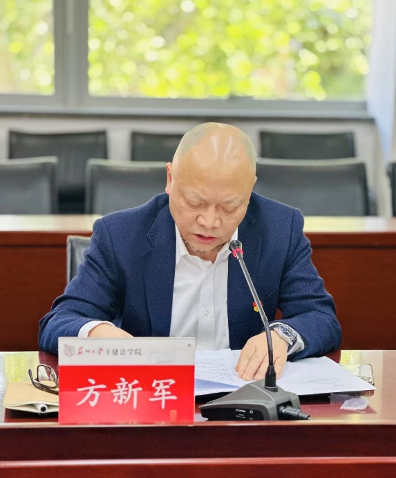 会议伊始,方新军作深入贯彻中央八项规定精神学习教育专题党课。他从“历史意义与时代要求”“主要内容与核心要义”等维度系统梳理了中央八项规定精神的演进脉络,强调该规定是“新时代全面从严治党的金色名片”,着重解读了《实施细则》中关于厉行节约、规范公务接待等具体要求。结合法学院实际,方新军要求党员干部要深入调研、改进作风,厉行勤俭、严守廉洁规定,永葆为民务实清廉本色;正确处理公私义利等关系,抵制特权思想,坚决反腐倡廉,做到清白为官、干净干事、老实做人。