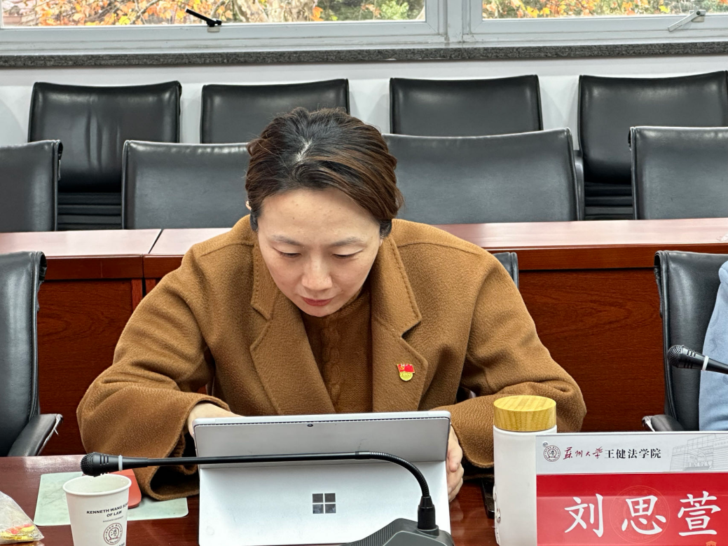 法硕(非法学)三支部书记李芊芊总结了支部的年度工作,并指出了支部的特色做法:鼓励党员同志参与活动的主动性,并联合其它支部和组织开展活动。如今年一月本支部联合法硕非法学二支部,开展贯彻党的二十大精神主题党日活动,邀请张鹏老师为大家上党课;今年二月的党日活动以苏州“四敢”新精神为主题,邀请了有相应家乡背景的同学为大家分别讲解张家港精神、昆山之路、园区经验;十月的党日活动,支部开展《志愿军:雄兵出击》红色观影活动,联合学院分党校共同观看,充分发挥支部党员的对积极分子的引领带头作用。此外,总结了支部的不足之处,如支委会对于“学习强国”的宣传力度不足,党员们主动学习的积极性不高,而只是在党日活动的开展过程中能够主动进行相关材料的学习,并提出了今后的改进思路。