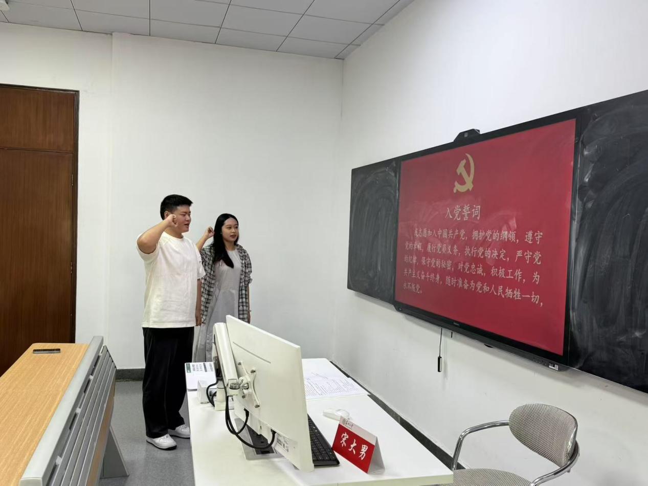 经支部大会表决,同意接收龙笑如、金芷卉同志为中共预备党员。两位同志进行了入党宣誓。
