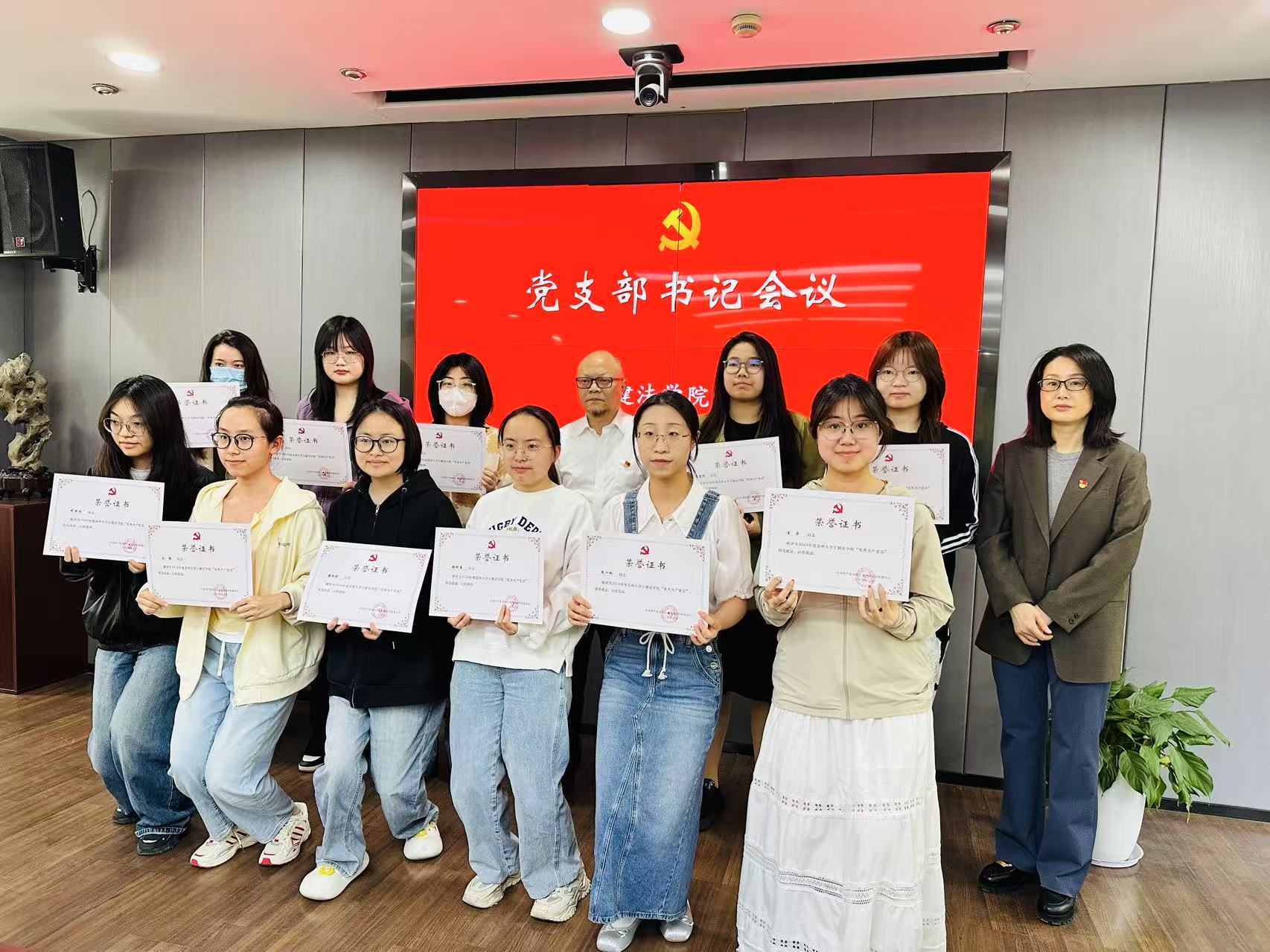 会议伊始,朱春霞宣读《关于表彰2024年度优秀党支部、优秀党务工作者、优秀共产党员的决定》,对在基层党建中表现突出的4个党支部、6名党务工作者和13名优秀党员予以表彰。方新军、朱春霞共同为获奖集体和个人颁发证书。会上同步揭晓了2024年“最佳党日活动”评选结果。本科一支部以“寻访红色法治基因,赓续红色法治血脉”活动获优秀奖,学术三支部凭借“溯历史 鸣警钟 心向党 破难题——以党建共建赋能新时代法学人才高质量培养”活动获鼓励奖。方新军指出,这些成果展现了法学院“党建+专业”融合育人的创新实践,要以标杆力量激发全院党员干事创业的热情。