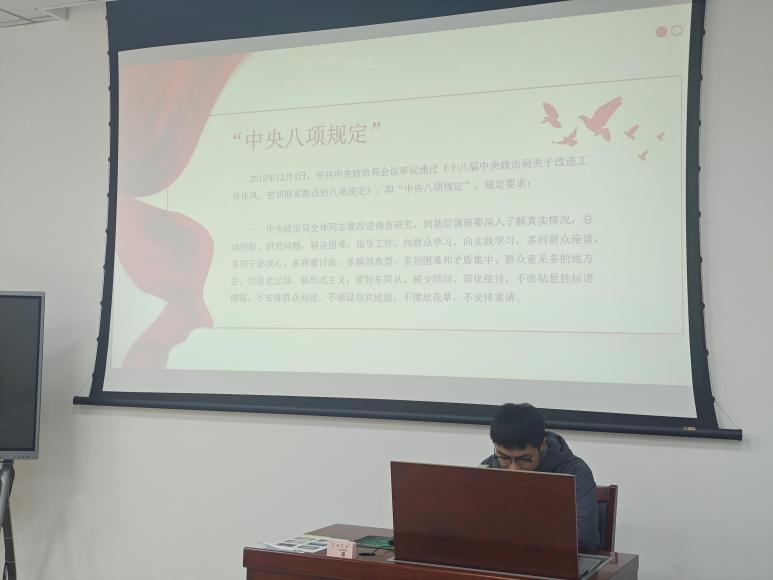 会议伊始,全体党员对中央八项规定精神进行了深入学习,进一步提高政治站位,深化思想认识,以更高标准、更严要求勉励自身砥砺前行。党支部书记李雨菲认为,党的作风关系人心向背,决定党和国家事业成败。加强党的作风建设是全面从严治党的重要内容,是新时代推进党的自我革命的重要抓手。习近平总书记围绕加强党的作风建设发表的一系列重要论述,立意高远,内涵丰富,思想深刻。我们要提高政治判断力,深刻认识习近平总书记关于加强党的作风建设论述的重大意义。