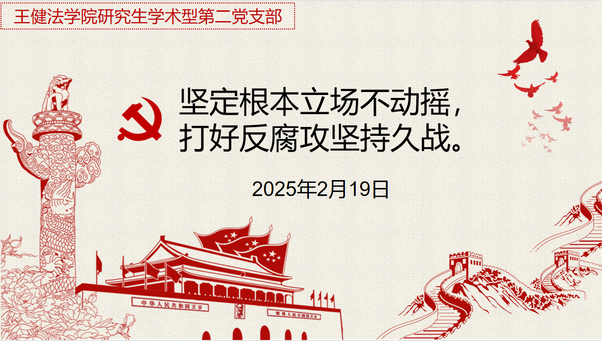 研究生学硕第二党支部开展以“坚定根本立场不动摇,打好反腐攻坚持久战”为主题的党日活动,党支部组织全体党员集体学习2025年1月6日至8日在北京举行的中国共产党第二十届中央纪律检查委员会第四次全体会议精神,坚守党的初心使命,坚决打好反腐败斗争攻坚战、持久战、总体战。