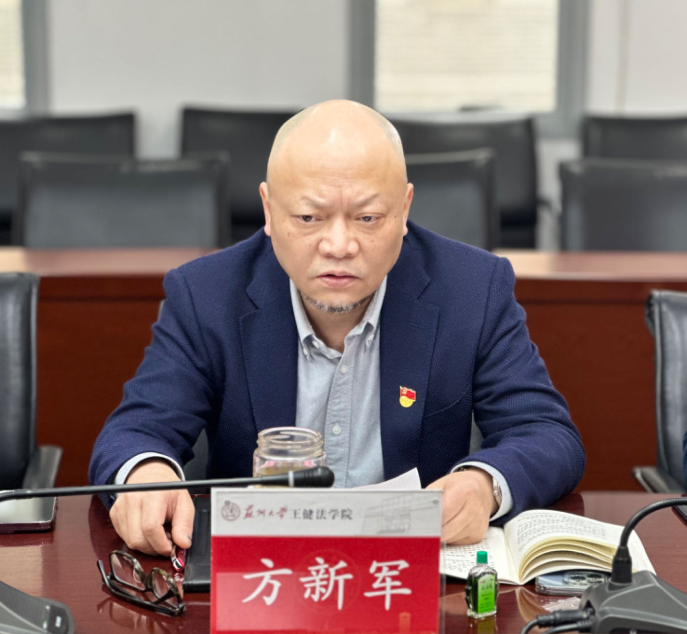 院长方新军作重点发言。他强调,作为法学教育工作者,在培养法律人才的过程中,不仅要教授法律知识,更要注重培养学生崇高的职业道德和坚定的法治信仰;要将党纪国法融入日常教学科研之中,为我国的法治建设输送更多德才兼备的优秀法律人才。