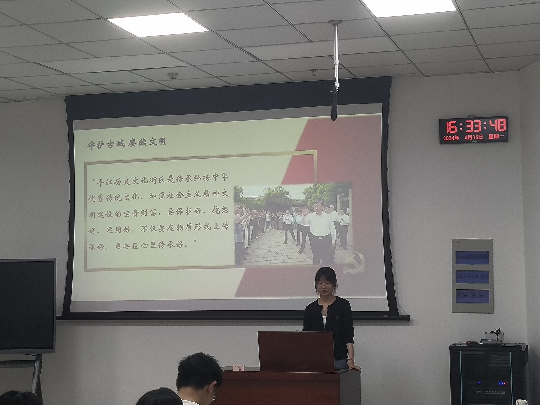 “平江历史文化街区是传承弘扬中华优秀传统文化、加强社会主义精神文明建设的宝贵财富,要保护好、挖掘好、运用好。”按照习近平总书记的指示,苏州努力探索守护古城文脉的“苏州路径”,平江路俨然成为苏州最响亮的城市名片。平江路的格局、格调历经2500多年没有改变,与宋代《平江图》基本一致,如今,又在活化保护中焕发新的活力——修旧如旧,保存其真,从“一块匾”、“一只桶”,到“一根线”、“一口井”……学生党员从平江历史街区前后对比中,感叹道:古城保护得越来越好,古城居民的生活也越来越舒心。