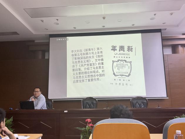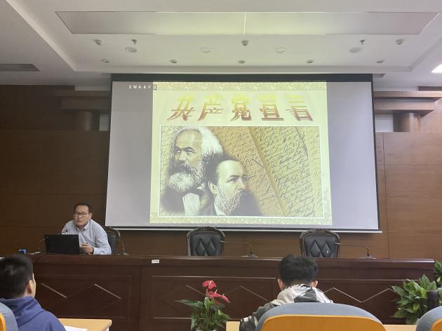 最后,会议进入第五个议程,召开《共产党宣言》读书会。支部书记单杰老师分享了自己的读书感悟,带领全体支部党员进行了一次马克思主义的溯源之旅、共产主义信仰的初心之旅。他强调,学习这一经典著作,就是要“回到源头学”,学习马克思、恩格斯善于洞察社会,揭示社会发展规律的本领,就是要在思想上与时俱进,在学习中开拓创新。《共产党宣言》的诞生标志着马克思主义的诞生,对全世界的无产阶级革命运动起了巨大的推动作用,并在百年之后直接影响了中国几代领导人的政治方针,推动了中国的发展。