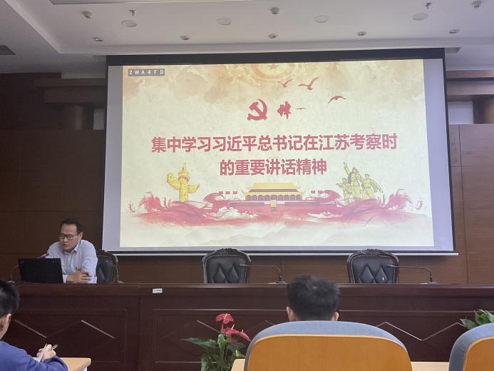 之后,会议进入第四个议程,集中学习习近平总书记在江苏考察时的重要讲话精神。单杰老师领学习近平总书记在江苏考察时的重要讲话精神,他以苏州为例,提出三点意见:其一,中国式现代化,关键是要在科技现代化。江苏在科技现代化上要打造全国重要的产业创新高地,使高质量发展更多的依靠创新驱动的内涵性增长。改革开放以来,苏州总结形成三大法宝——张家港精神、昆山之路和园区经验,稳步迈进科技化新苏州。