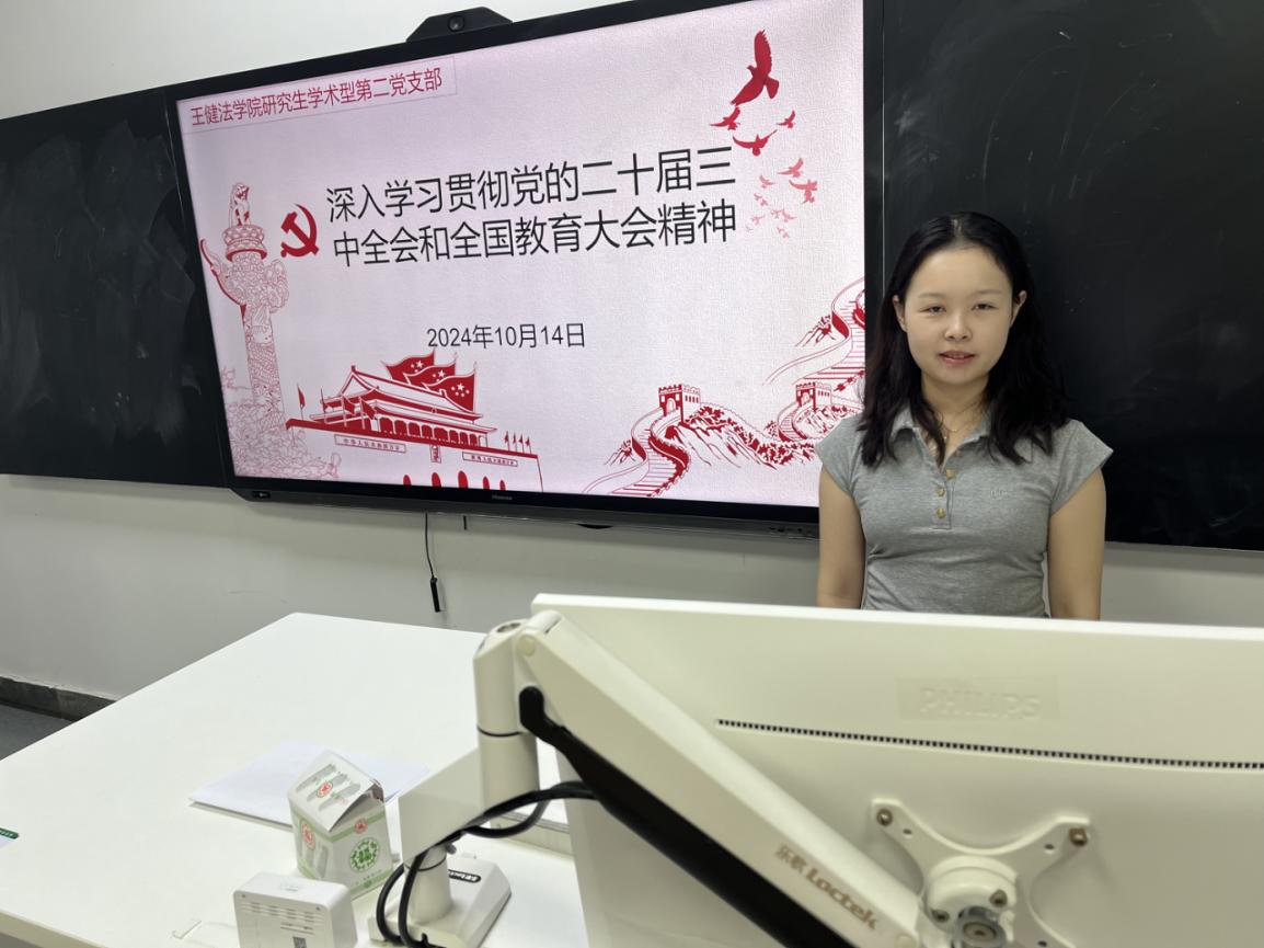 研究生学硕第二党支部以“深入学习贯彻党的二十届三中全会和全国教育大会精神”为主题,于2024年10月14日开展党日活动。
