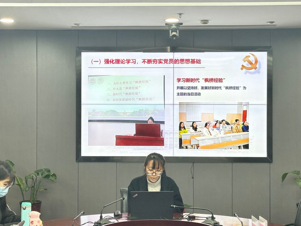 教工一支部书记王俊汇报本年度的基本工作情况:以新时期学校教工党支部建设的思想为行动指南,积极开展了具有支部特色的各项活动,取得了一定的成绩。开展的具体活动包括:召开民主生活会、组织学习党的二十届二中全会会议精神、组织党员赴安吉参加党建活动、组织党员观看电影。同时,也反思了工作中的不足:教工党员由于存在自身的教学与科研方面的压力,活动的次数和活动的形式有待提高和丰富。
