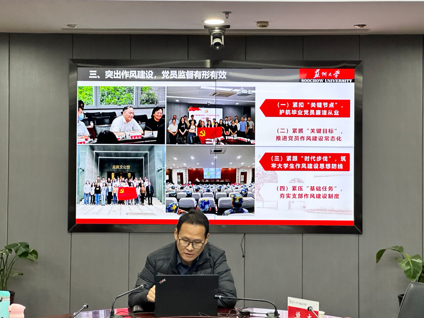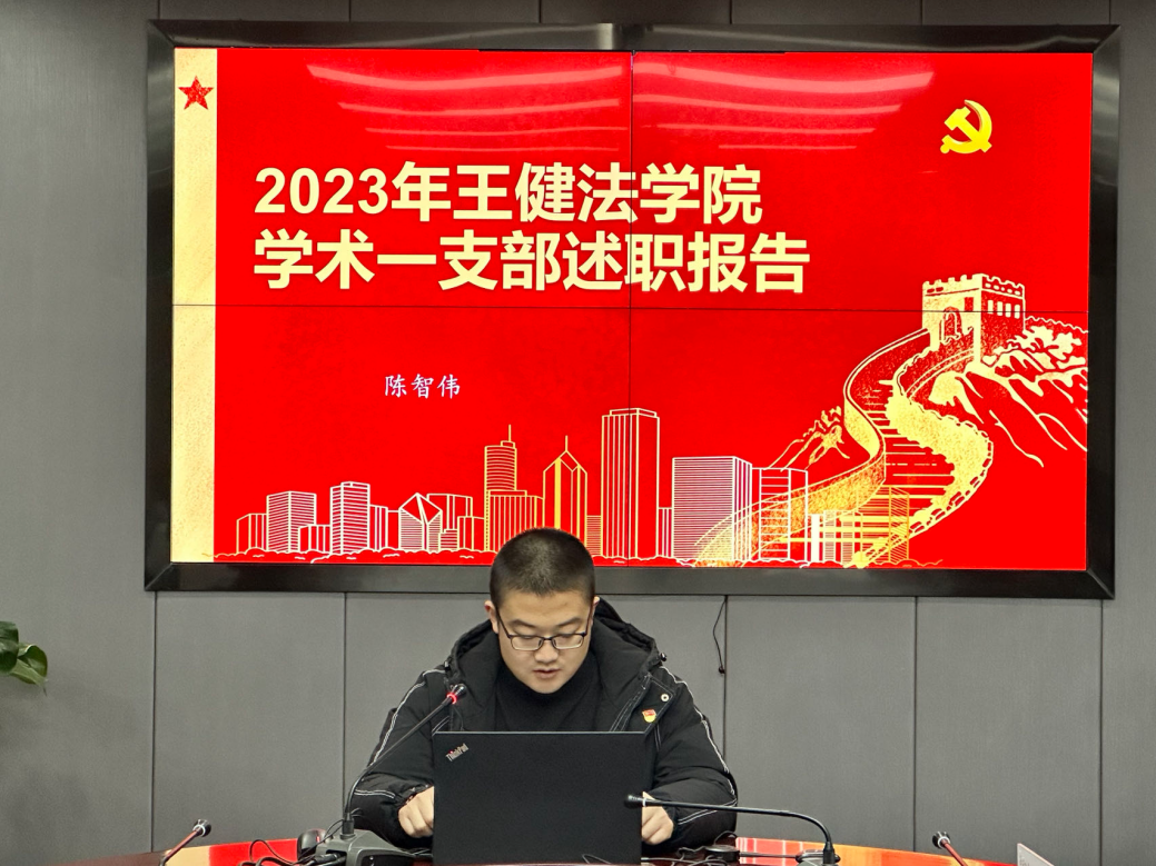学术一支部书记陈智伟总结了支部的年度工作,包括:强基固本,建章立制夯实基础党务;稳中求进,谋篇布局争创支部特色;继往开来,总结回顾形成长效机制。支部的特色做法在于始终坚持党班团协同发力。支部定期召开党班团联席工作会暨支委扩大会,邀请班干、团干中的党员参加支委工作会,非党员班干、团干列席旁听,既起到集思广益的作用,也实现了有效的党外监督。此外,和团支部联合开展了“追忆峥嵘岁月,砥砺初心使命”沉浸式主题实践活动,参观了中共苏州独立支部旧址,补足了党员精神之钙,形成了“党建带团建,团建促党建”的良性互动。