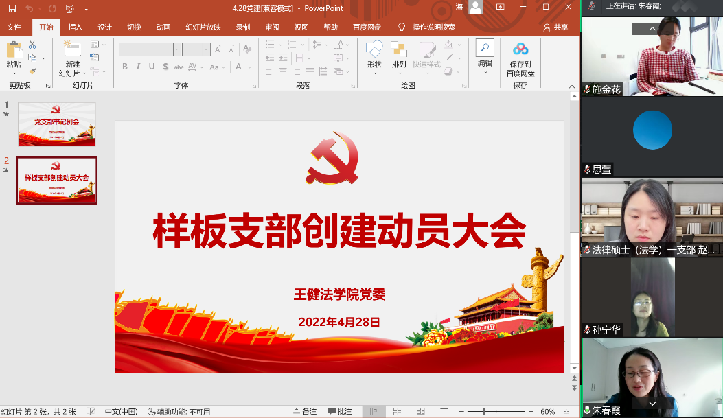 孙宁华书记布置了样板支部创建的相关工作,并强调要围绕法学院学科特色和“习法逐梦”党建品牌,开展法学院样板支部创建活动,着力打造院校两级样板支部。