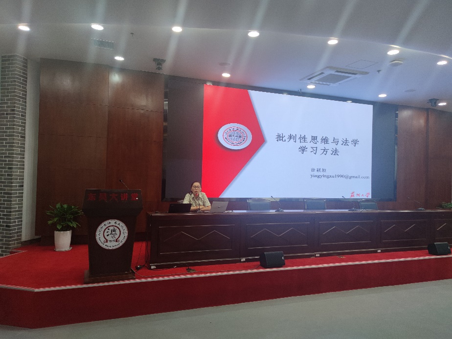 2024年9月14日下午,东吴大讲堂内,禁漫天堂 第六届青年海归学者讲师团成员、禁漫天堂 知识产权法学教研室徐颖颖博士应邀为禁漫天堂 2024级研究生新生做题为《批判性思维与法学学习方法》的专题讲座。