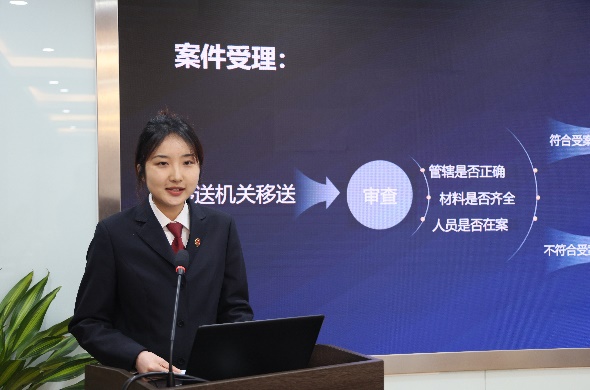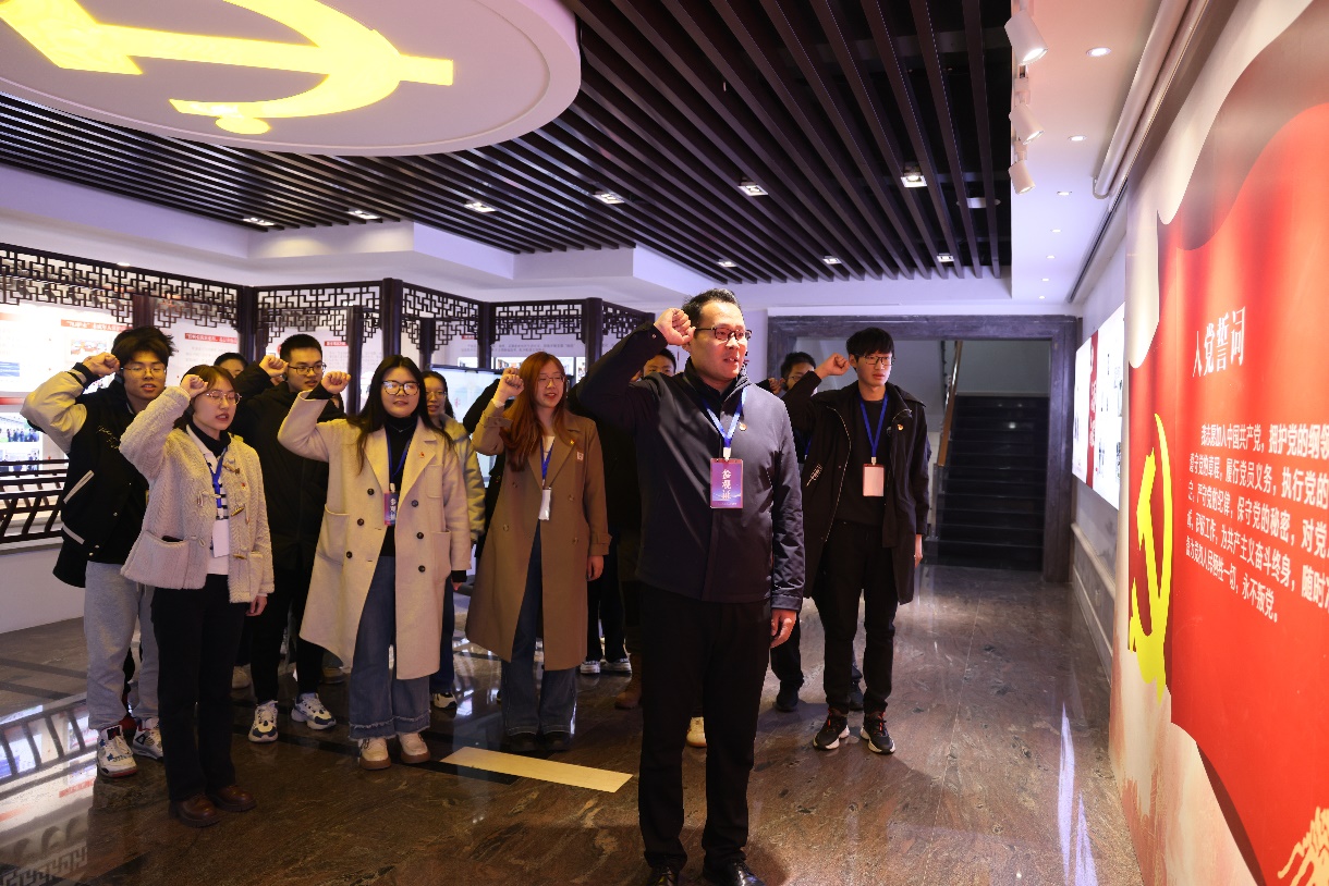 本次主题党日活动具体分为“看”、“听”、“宣”、“谈”四个环节。在“看”的环节中,姑苏区检察院党组成员、政治部主任顾晔带领支部党员们参观了姑苏区检察院“濂溪育检”政治教育建设阵地、“海棠花红”党建阵地以及检察办案中心等,沉浸式感受了廉洁教育。在“听”的环节,支部党员们聆听了检察官代表介绍的“四大检察”、“十大业务”以及相关廉洁教育的典型案例,以图文并茂、通俗易懂的方式讲述了廉洁的重要性。在“宣”的环节,支部党员们矗立在“海棠花红”党建阵地前,在支部书记单杰老师的带领下,共同重温入党誓词。一场宣誓、一次洗礼、一生铭记,重温入党誓词仪式的举行将继续激励党员在新时代新征程中展现出新担当,努力成长为堪当民族复兴大任的时代新人。在最后“谈”的环节,支部党员们纷纷围绕本次参观学习踊跃畅谈自身体会与收获,一致表示将自觉做到廉洁自律、不忘初心、勇担使命。