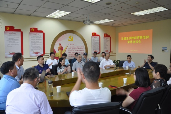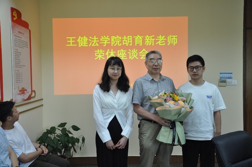 胡育新老师对大家的肯定表示感动,对学院给予的关心、关爱表达了感谢。他回忆了自己的工作经历,对见证了法学院各项工作不断进步表示欣喜。他也对自己离开法学院表示了不舍。胡老师在自己开启新的人生阶段之时,也祝愿在场的各位师生生活幸福。