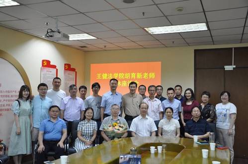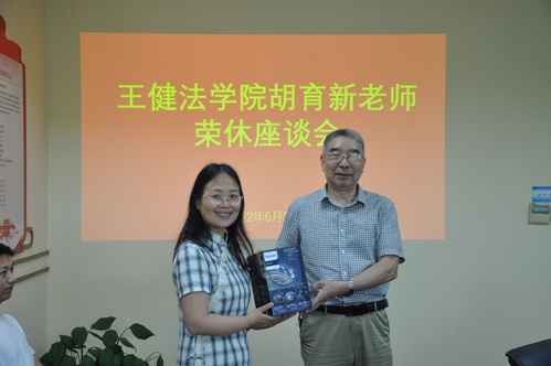 孙宁华书记表示,今天是胡育新老师60周岁生日,学院党委及工会特别举办本次荣休仪式,也借此机会向为学院建设发展付出辛劳的胡育新老师致以崇高敬意和诚挚感谢。她将各位老师所描绘胡老师总结为:生活中有情趣、工作上够敬业、家庭中有担当。她用“夕阳无限好,六十正青春”祝福胡老师六十甲子之后拥有更加精彩的人生,并希望他可以常存在学院工作的美好记忆,常回法学院看看。
