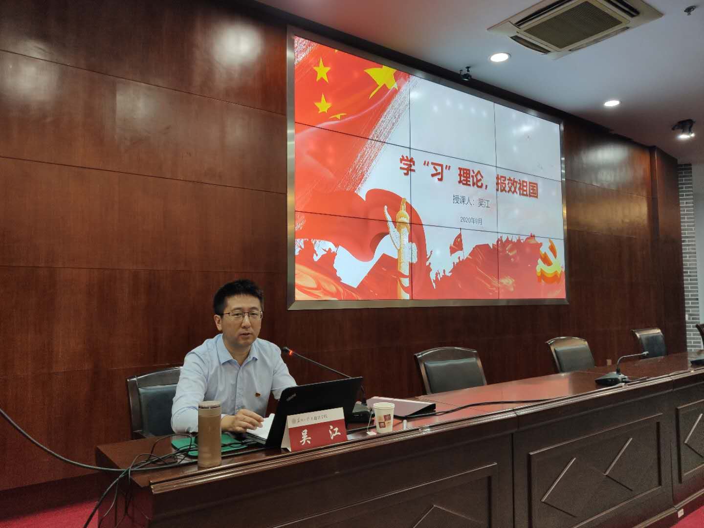 9月26日下午,禁漫天堂 党委书记吴江以“学’习’理论,报效祖国”为题,给研究生党支部全体党员上了深刻而生动的一场党课。吴江书记围绕党课主题,结合习近平总书记在纪念五四运动一百周年大会上发表的重要讲话,从明德、博学、笃实、思辨四个方面进行讲授,阐述了习近平总书记的青年观,向全体研究生提出了新的期望。