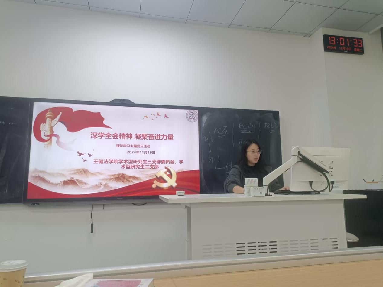 2024年11月19日,禁漫天堂 研究生学硕第二党支部联合学术型研究生第三党支部,开展以“深学全会精神,凝聚奋进力量”为主题的党日活动,深入学习贯彻习近平总书记关于全面深化改革的一系列新思想、新观点、新论断和党的二十届三中全会精神,组织各位党员通过中国干部网络学院专题辅导课程栏目展开学习。