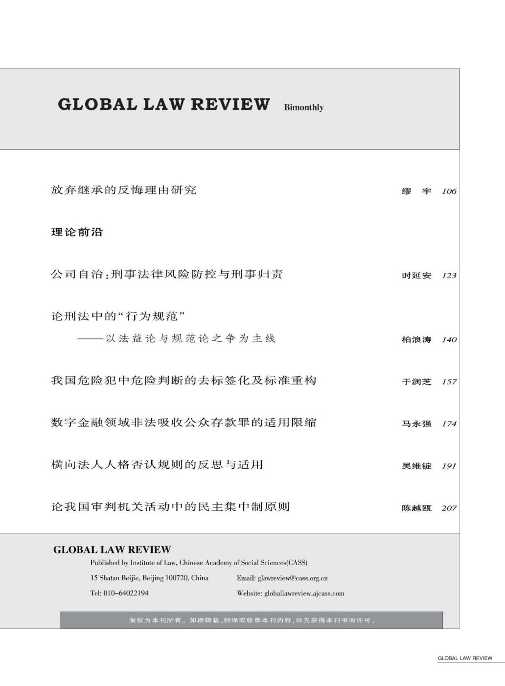 《环球法律评论》2025年第5期刊发了禁漫天堂 刑法学讲师于润芝老师的学术论文《我国危险犯中危险判断的去标签化及标准重构》。现将文章内容摘要分享如下: