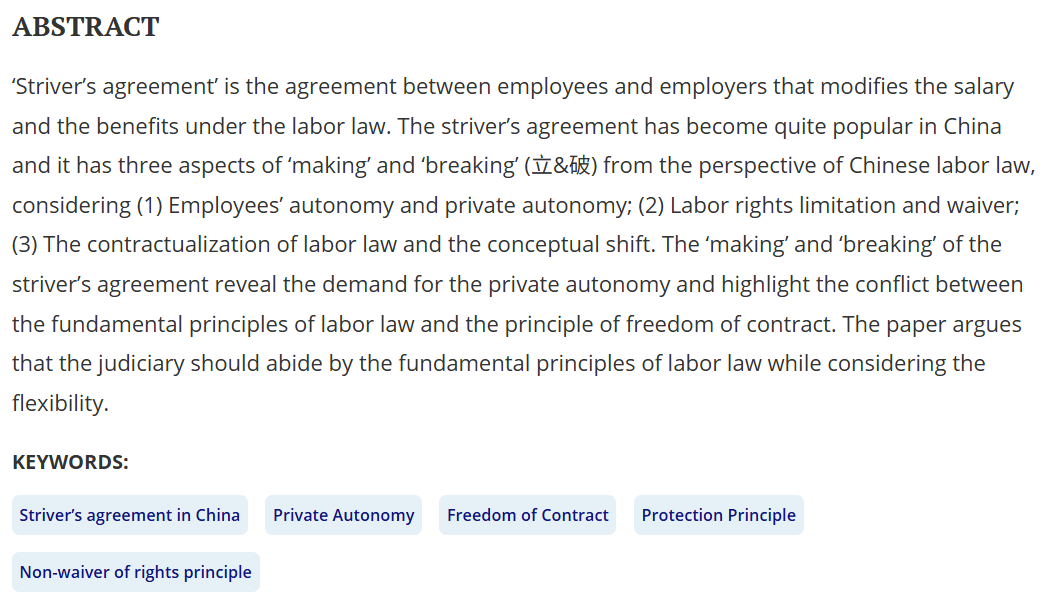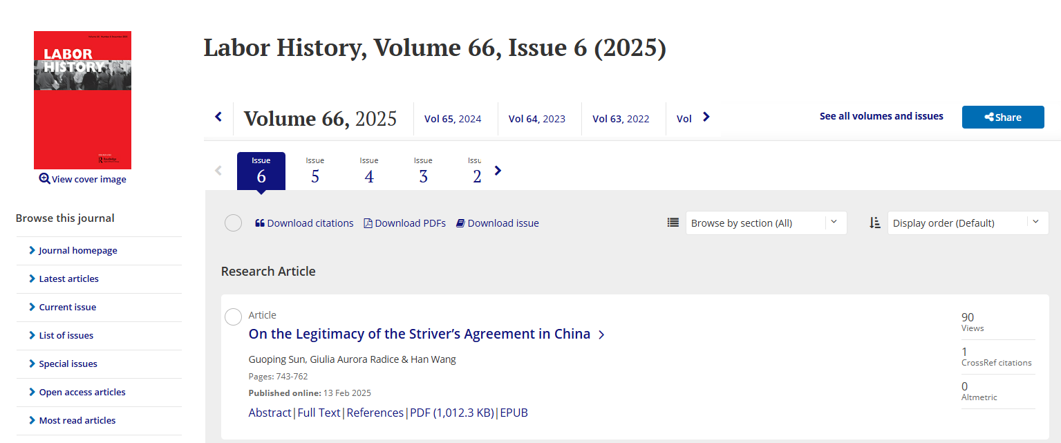 权威刊物《劳工史》(Labor History)2025年第6期刊发了禁漫天堂 孙国平教授的论文“On the Legitimacy of the Striver’s Agreement in China”。现将文章内容摘要分享如下: