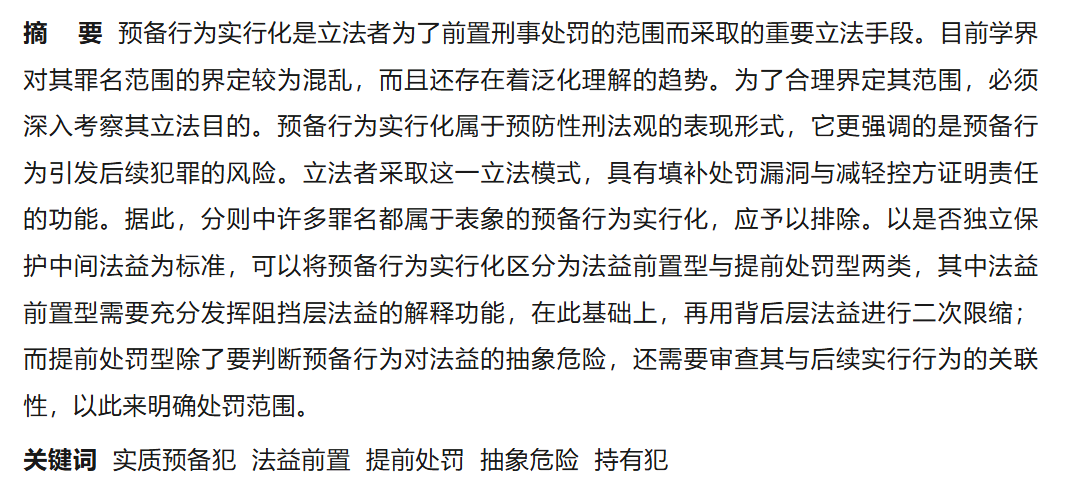 文摘来源:王俊:预备行为实行化的立法根据与解释规则▏《中外法学》2025年第6期