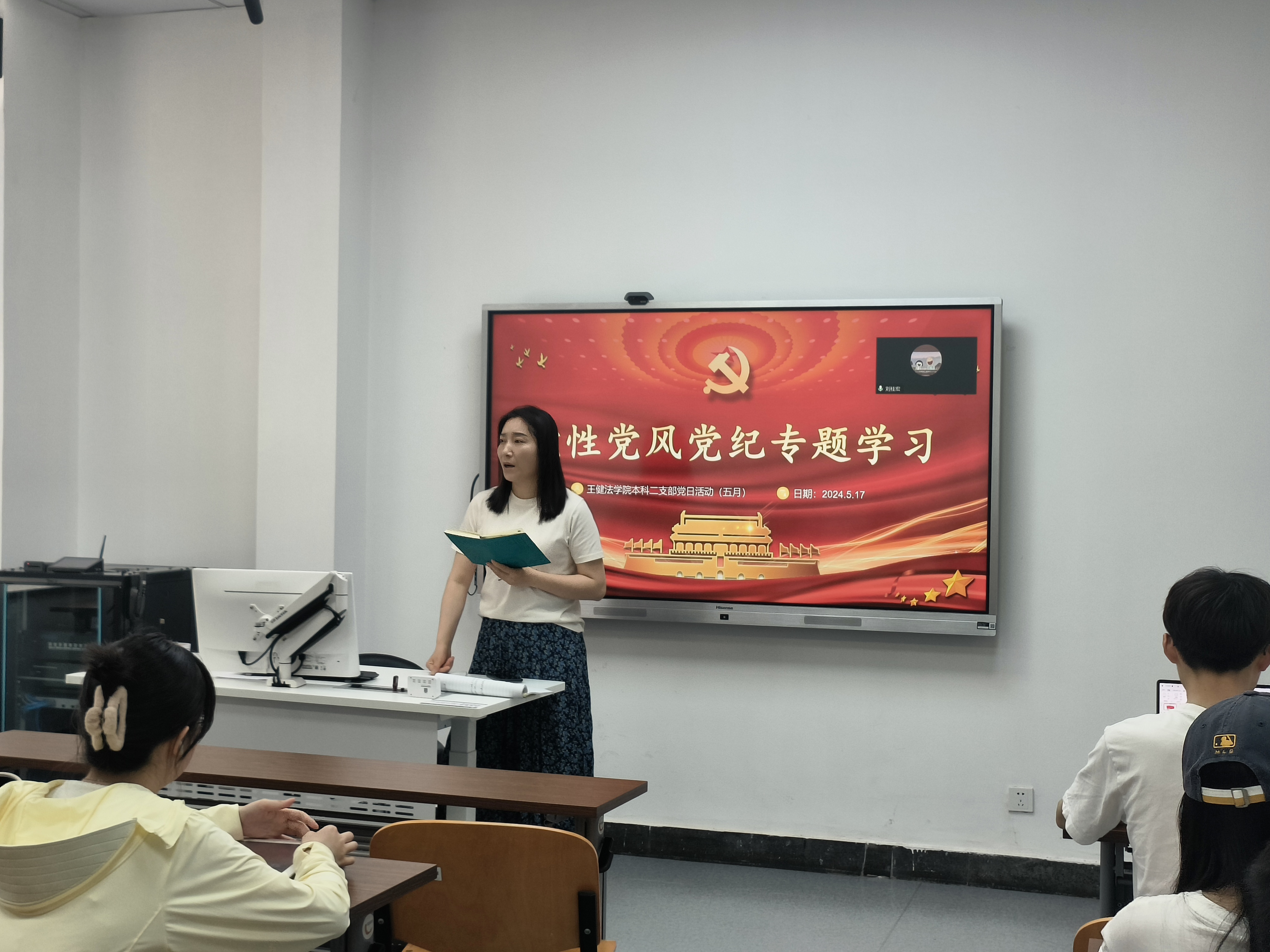 2024年5月17日,本科二支部党员在禁漫天堂 A113教室开展了5月份的党日活动。面对各位青年党员即将进入社会的情况,支部书记刘桂宏老师聚焦《中国共产党纪律处分条例》,以幻灯片讲解、主题视频学习的方式,开展了一次严肃生动的廉洁纪律大学习。