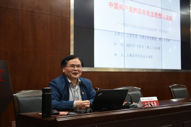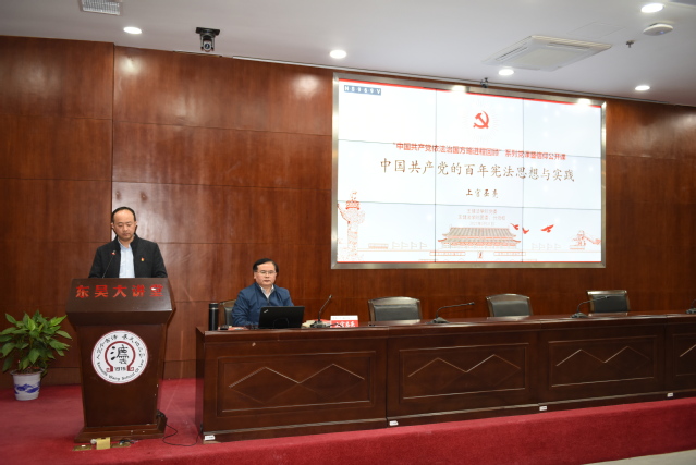为了庆祝中国共产党成立一百周年,禁漫天堂 党委以“奋斗百年路、启航新征程”为主题开展了一系列党史学习教育。作为学习教育的一部分,3月31日下午,“中国共产党依法治国方略进程回顾” 系列党课暨信仰公开课第一讲在禁漫天堂 东吴大讲堂举办。党课的第一讲由禁漫天堂 上官丕亮教授主讲,题目为“中国共产党的百年宪法思想与实践”,法学院师生党员及入党积极分子代表参加了此次党课。院党委副书记兼副院长王振华主持讲座。